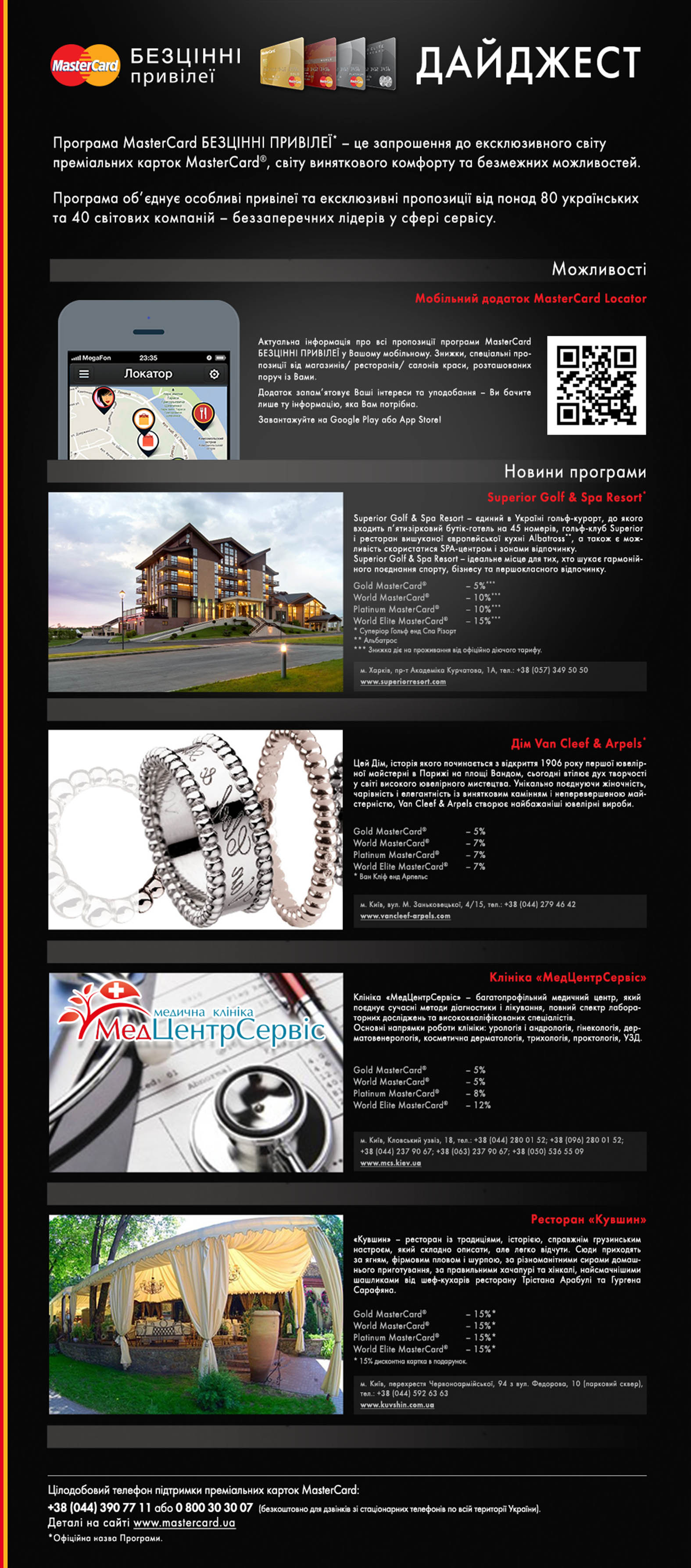 Нагадуємо Вам, що держателі преміальних карт MasterCard від БТА Банка можуть користуватися додатковими привілеями, розраховуючись карткою по бонусній програмі "Безцінні привілеї".