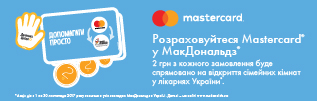 Розраховуйтеся карткою Mastercard® від БТА Банк у МакДональдз, і 2 грн з кожного замовлення буде спрямовано на відкриття сімейних кімнат у лікарнях України*.
