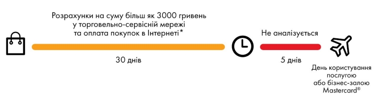 До уваги власників карток Platinum Mastercard ® від БТА Банку. Починаючи з липня 2018 року отримання доступу до бізнес-зали Master c ard ® або послуги Fast Line в аеропорту «Бориспіль» відбуватиметься за додатковою умовою здійснення транзакцій на загальну суму не менше 3000 грн у торговельно-сервісній мережі або покупок в Інтернеті за останні 30 + 5 днів по вашій картці Platinum Master c ard® від БТА Банку.