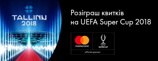 - виграйте одну з п’яти пар квитків 2-ї категорії на UEFA Super Cup 2018, що відбудеться 15.08.2018 в Талліні, Естонія;