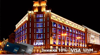 Знижка 10% у разі оплати преміальними картками Visa Platinum одягу, взуття й аксесуарів колекцій весна-літо 2020 вибраних світових брендів.