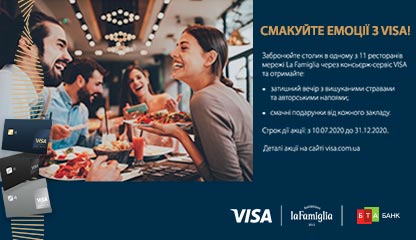 Пропозиція діє з 17.07.2020 по 31.12.2020 для держателів преміальних карток Visa Platinum.