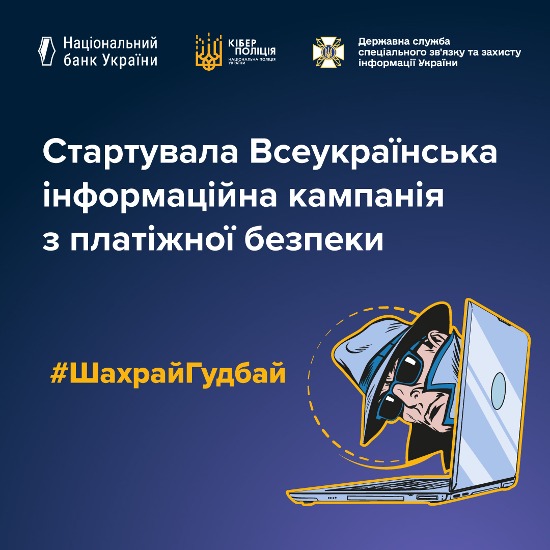 Національний банк України разом із Департаментом кіберполіції Національної поліції України та Державною службою спеціального зв'язку та захисту інформації України із 13 травня 2025 року розпочинає чергову хвилю Всеукраїнської інформаційної кампанії з платіжної безпеки – #ШахрайГудбай.